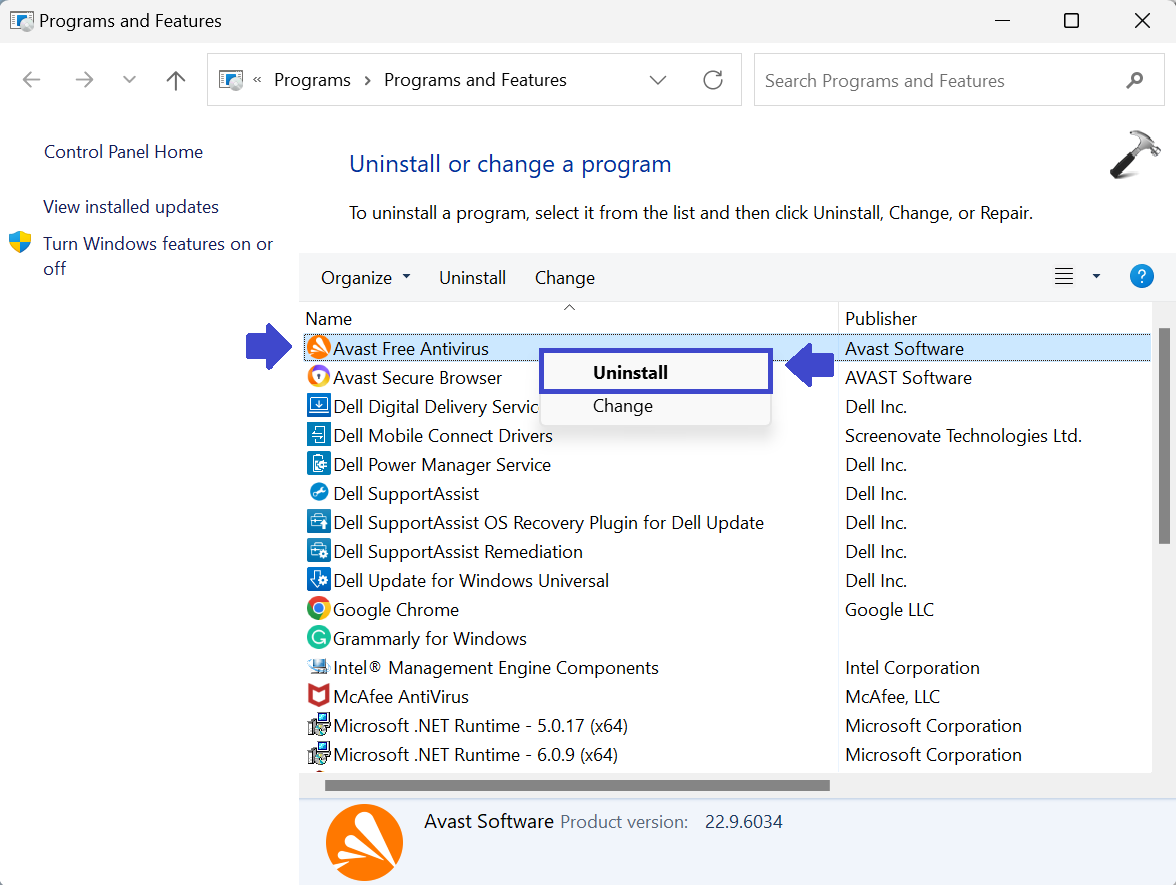 2. Ahora, haga clic derecho en el Antivirus instalado en su PC.
