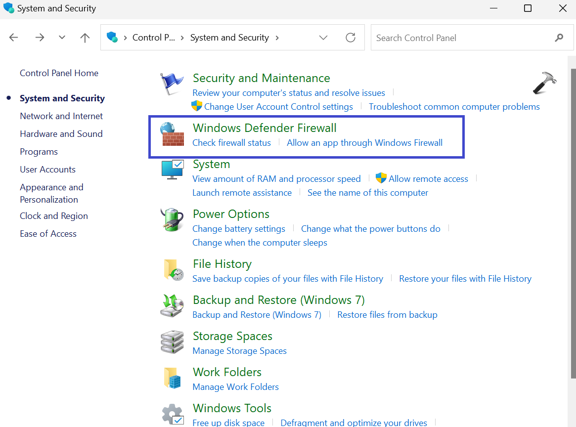 2. Ahora, haga clic en Firewall de Windows Defender.