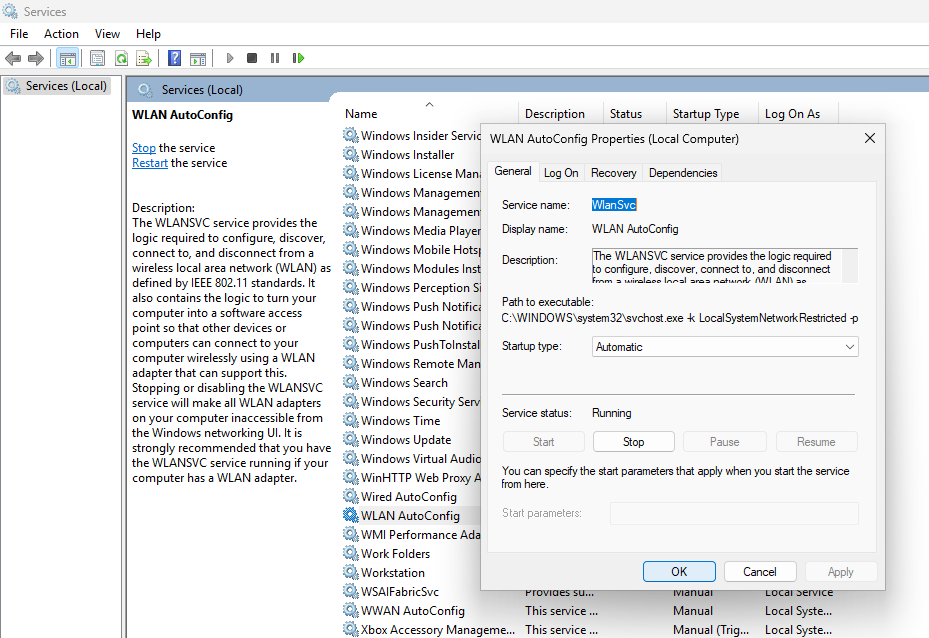 Solución 4: verificación del servicio de configuración automática de WLAN