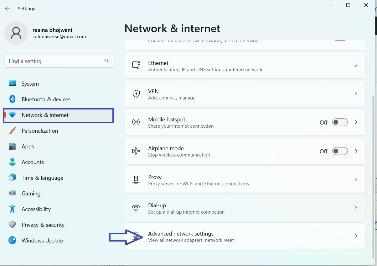 2. Haga clic en "Red e Internet" > haga clic en "Configuración de red avanzada".