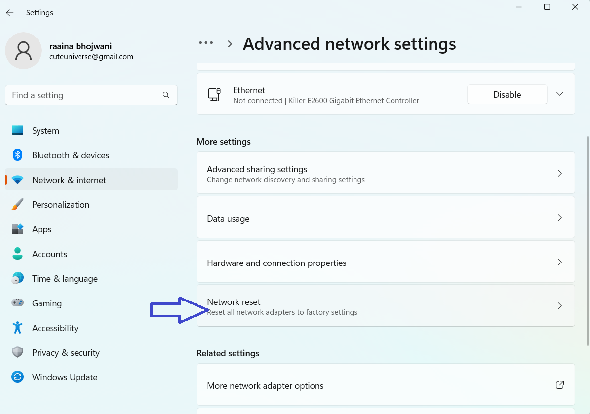 3. Haga clic en "Restablecer red".