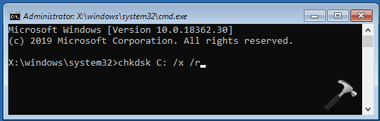 - Si el escaneo muestra errores, ingresechkdsk/ren el símbolo del sistema y presione Entrar.