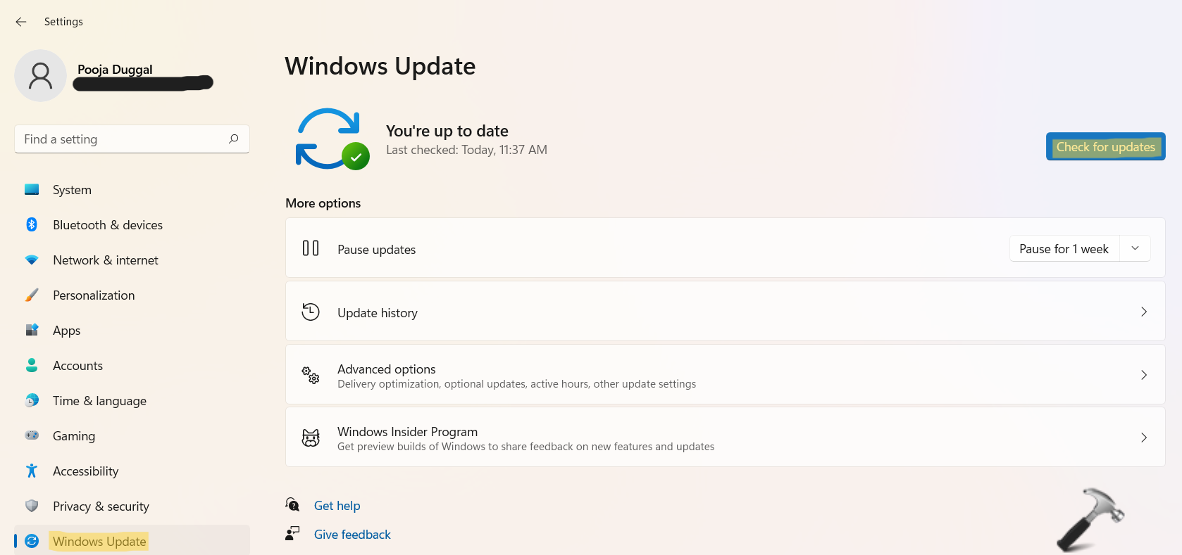 1.En primer lugar, abreAjustespresionando elventanas + yoclaves juntas en su sistema. Después de eso, haga clic en elActualización de Windowspestaña y seleccioneBuscar actualizaciones.