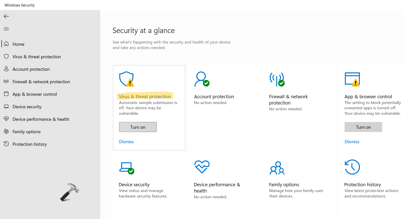 6.Ahora, abreSeguridad de Windowsy buscarProtección contra virus y amenazas. Ahora, haga clic enEncenderpara habilitar el servicio.