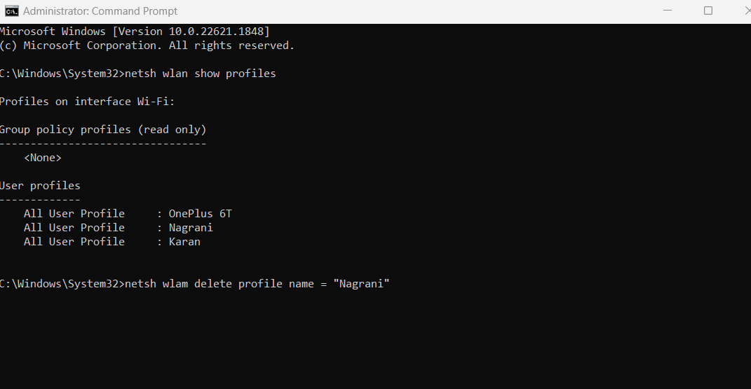 netsh wlan show profiles