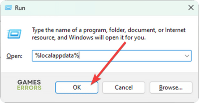 3. Tipo% datos de aplicación local%y haga clic enDE ACUERDO.