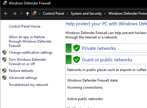 5. En el panel de la ventana izquierda, seleccione"Activar o desactivar el Firewall de Windows Defender".