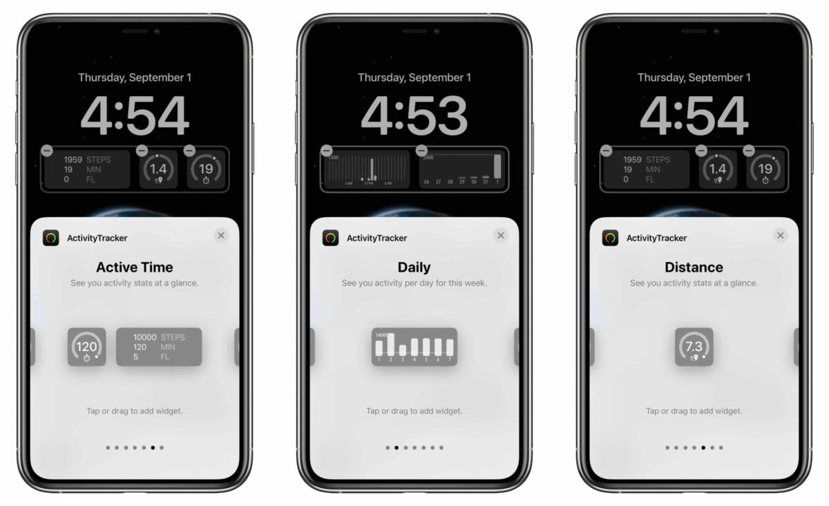 ActivityTracker Pedometer, un popular rastreador de actividad que puede funcionar sin un dispositivo de fitness, se actualizó recientemente para admitir widgets de pantalla de bloqueo. Los widgets te muestran el progreso de tu actividad con gráficos por horas y días. También puedes realizar un seguimiento de los pasos, calorías, distancia, tiempo activo y pisos subidos directamente desde la pantalla de bloqueo.