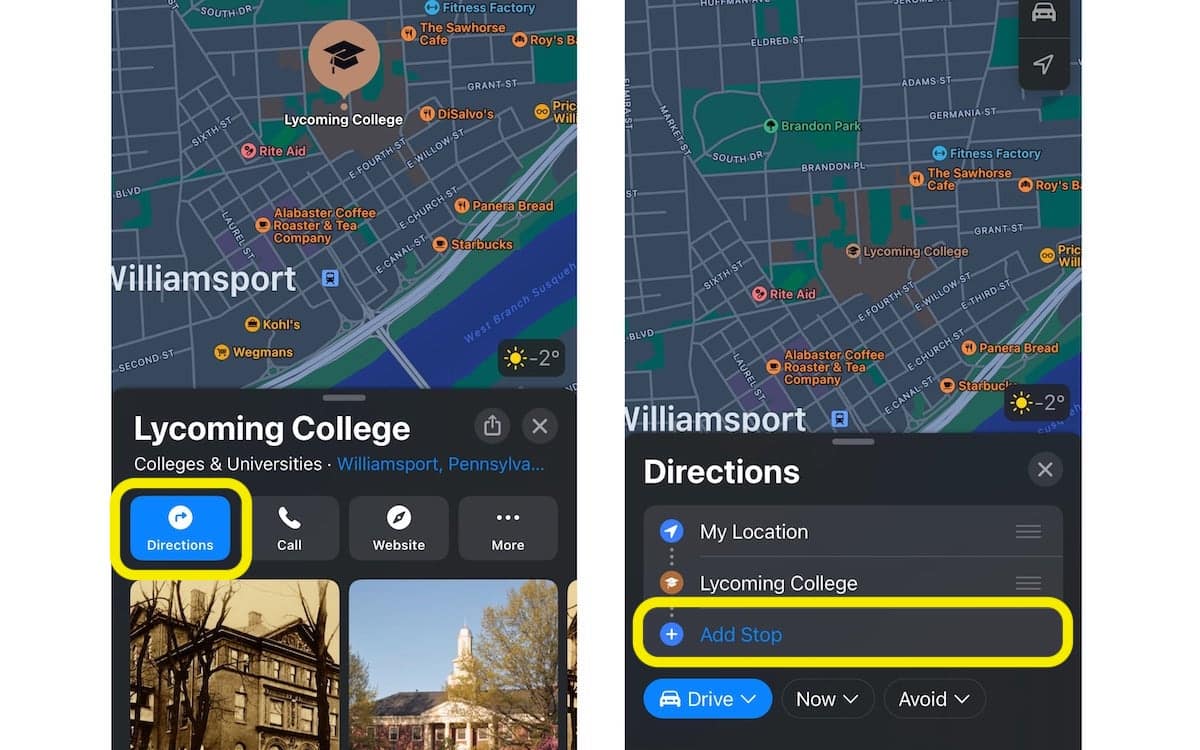 Cómo pausar indicaciones y eliminar una parada en una ruta en Apple Maps