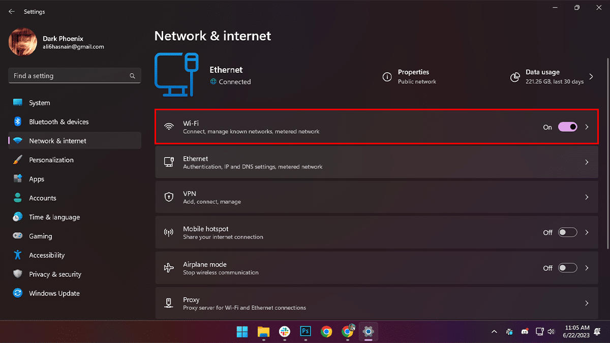 - AbiertoAjustes>Red e Internety luego haga clic enEthernetpágina.