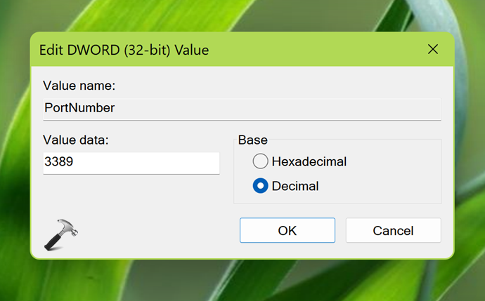 4.Finalmente, en la edición del valor DWORD, seleccione la base decimal y luego escriba el número de puerto deseado como información de valor. Haga clic en Aceptar para guardarlo.