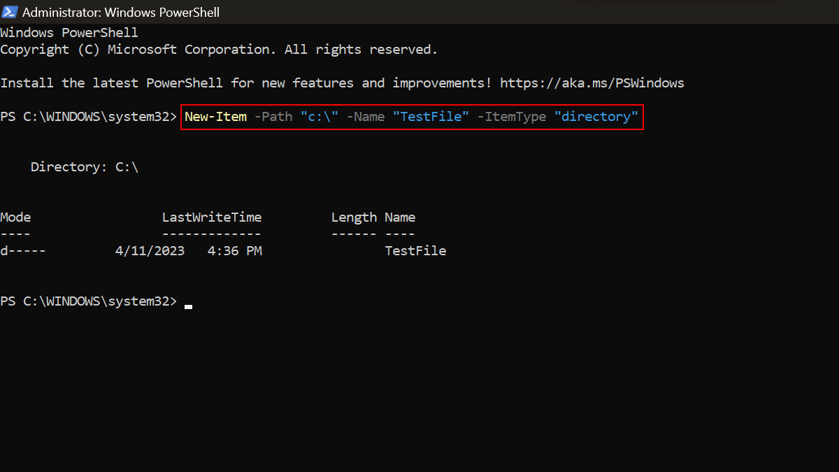 Cómo crear una nueva carpeta con Powershell en Windows 11