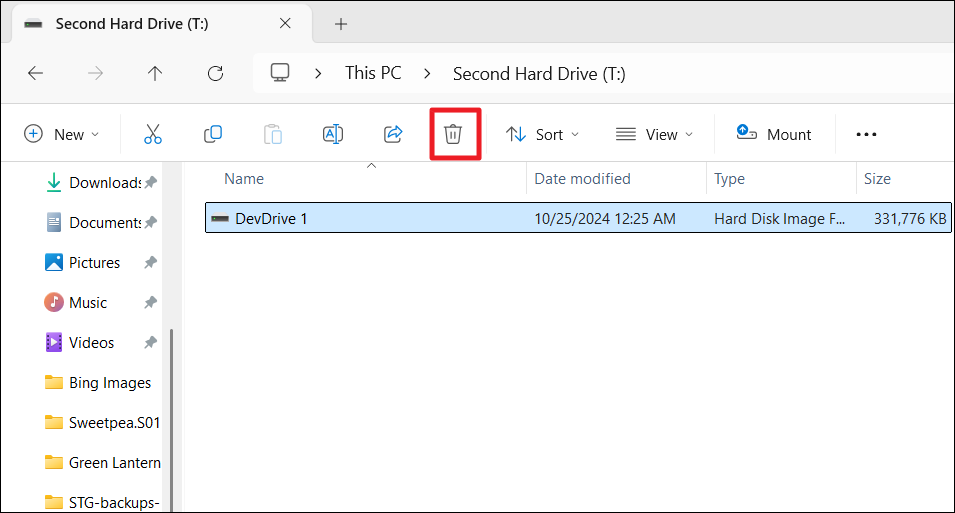 4. Si estaba utilizando una unidad de desarrollo en una unidad virtual, abra la ubicación donde solía guardar la unidad virtual y elimine la unidad de desarrollo.