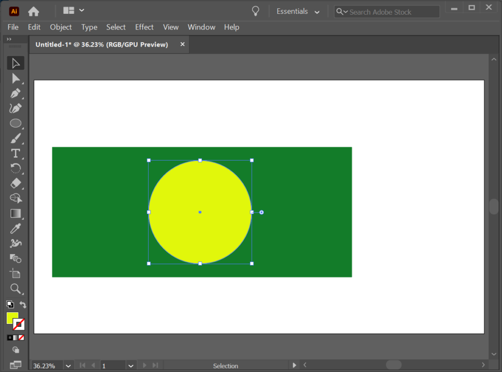 - Utilice elSelecciónherramienta para mover el círculo encima del rectángulo. Nota: Para activar rápidamente la herramienta Selección, use el método abreviado de tecladoV.