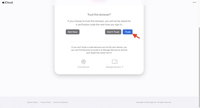 5.También se le pedirá que confíe en el navegador. Si no desea ingresar el código de autenticación una y otra vez, asegúrese de hacer clic en la confianza.