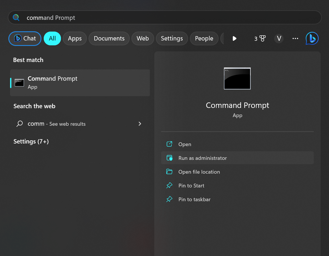 - Hacer clic enBuscary escribeSímbolo del sistemay ábrelo.
