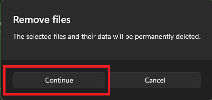 6.Hacer clicContinuary luego su computadora eliminará los archivos seleccionados.