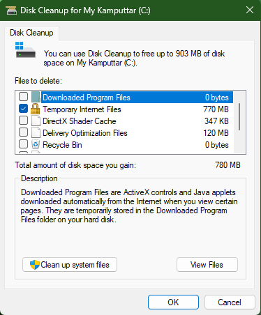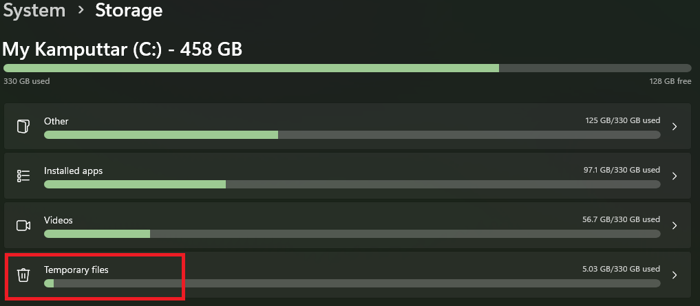 3.Hacer clic enArchivos temporales.