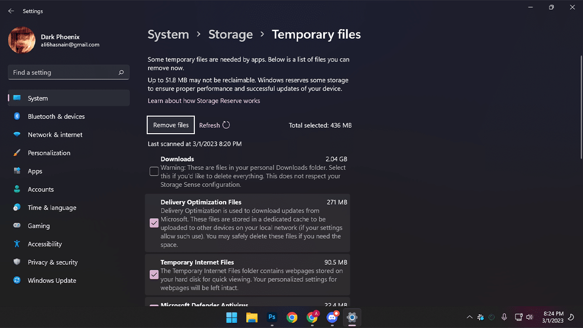 - Haga clic enDE ACUERDObotón > haga clic en elEliminar archivosbotón > y haga clic en elSíbotón.