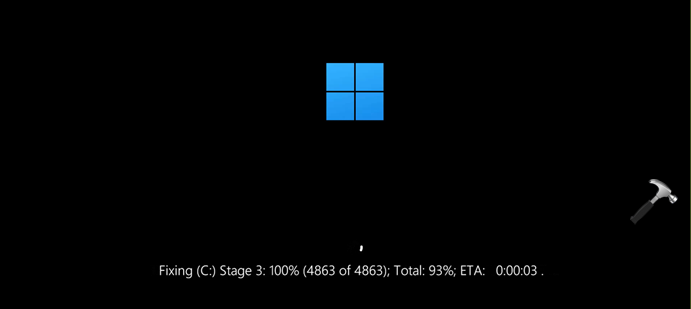 Una vez que elescaneo y reparaciónUna vez completado, especialmente para la unidad del sistema operativo, el sistema se reiniciará una vez y luego podrá iniciar sesión.
