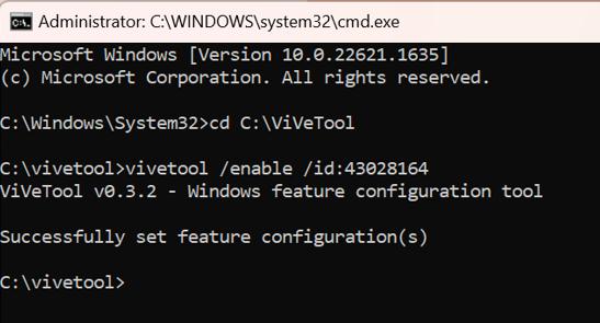 vivetool /enable /id:43028164