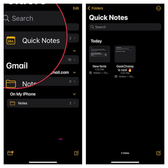 Cómo acceder y ver todas sus notas rápidas en iPhone