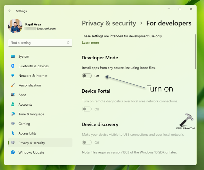 Cuando activa el modo Desarrollador, su Windows 11 podrá instalar aplicaciones desde cualquier fuente. Sólo debe habilitar el modo desarrollador cuando sea necesario. Porque en el modo Desarrollador, como dije, puedes instalar aplicaciones desde cualquier fuente. Por lo tanto, si le preocupa su seguridad, tenga cuidado cuando tenga habilitado el modo Desarrollador, ya que se pueden instalar aplicaciones de fuentes no verificadas en el sistema y pueden exponer su dispositivo y sus datos personales a riesgos de seguridad.