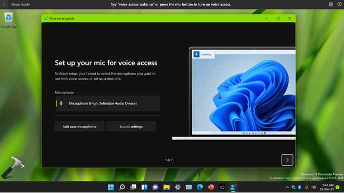 5.Una vez que se haya completado la configuración, verá la guía de acceso por voz. En la primera pantalla, puede seleccionar el micrófono que le gustaría usar. En caso de que desee omitir esta guía, puede hacer clic en Omitir guía en la segunda pantalla.
