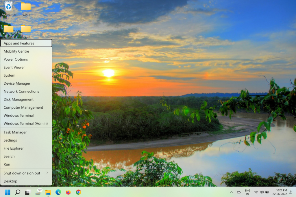 1.Abre elEnlaces rápidosmenú presionandoGanar + Xen el teclado.