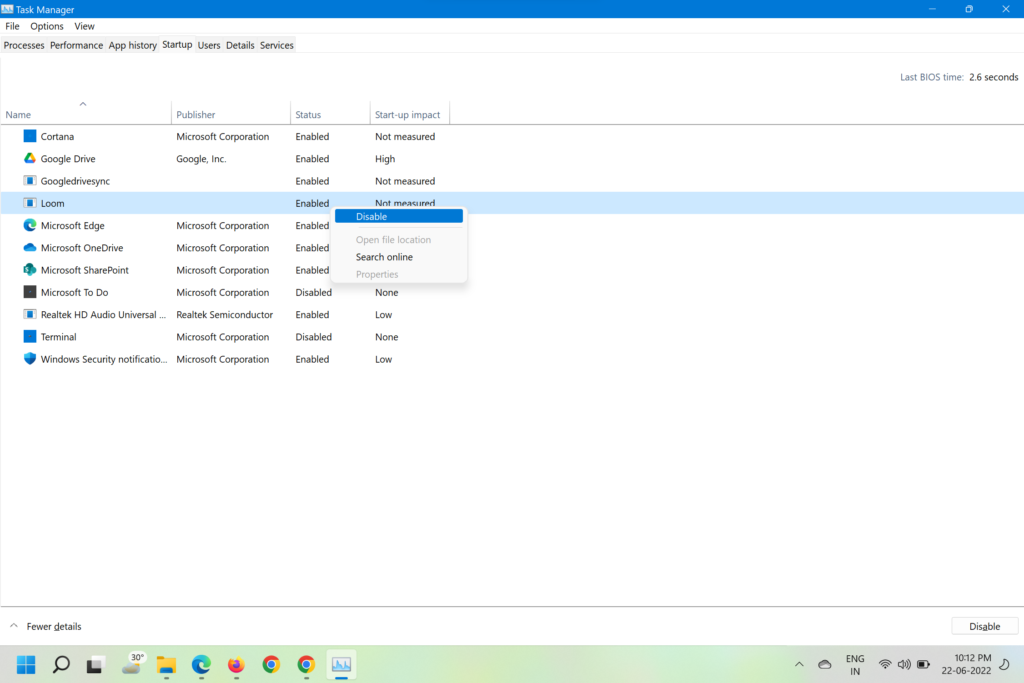 4.Si ve una aplicación de inicio que no utiliza durante el inicio, simplemente haga clic enDesactivardespués de hacer clic derecho sobre él.