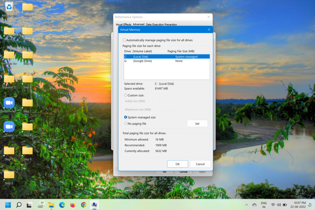 En caso de poca RAM, su PC a veces cambia a la memoria del disco duro para guardar aplicaciones y archivos en la memoria. A veces, esto ocupa mucho espacio y termina causando el problema de uso del disco al 100%. Puedes restablecer la memoria virtual para evitar esto. Aquí hay una guía paso a paso sobre cómo restablecer la memoria virtual en Windows 11.