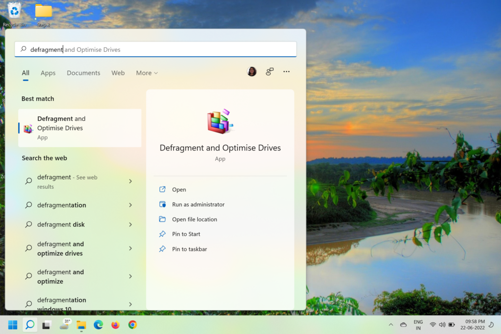 3.Haga clic en elDesfragmentar y optimizar unidadesy ábrelo.