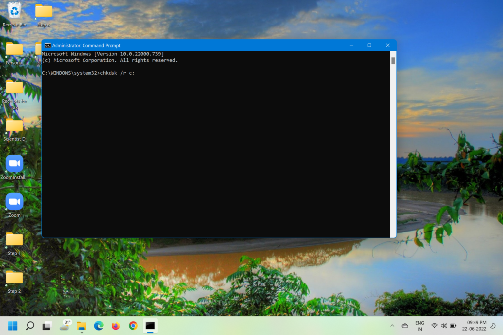 4.En el símbolo del sistema escribachkdsk /rc:y golpearingresar.