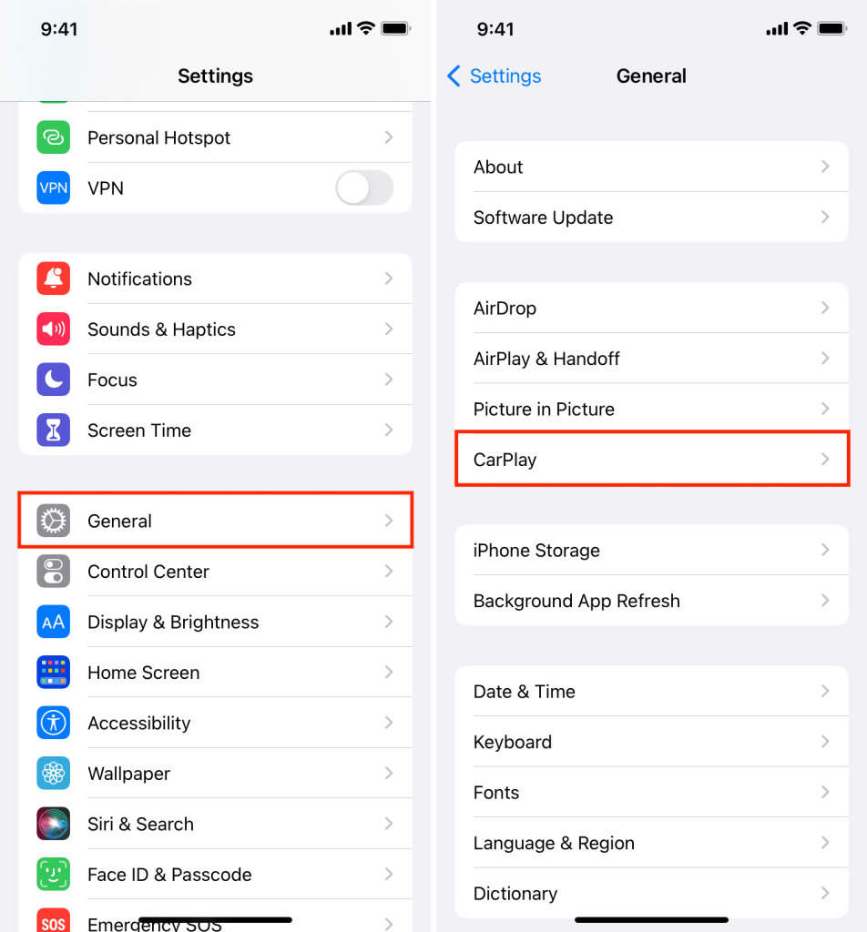 Paso 1: Comience desconectando su iPhone de la interfaz CarPlay. Luego, navegue hasta la aplicación Configuración en su iPhone y seleccione "General". Desde allí, desplácese hacia abajo y toque "CarPlay". Deberías ver una lista de vehículos disponibles que son compatibles con CarPlay. Toque el nombre de su vehículo para acceder a su configuración.
