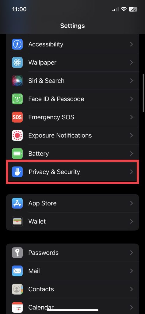 1.Ir alAjustesaplicación y visitaPrivacidad y seguridadajustes.