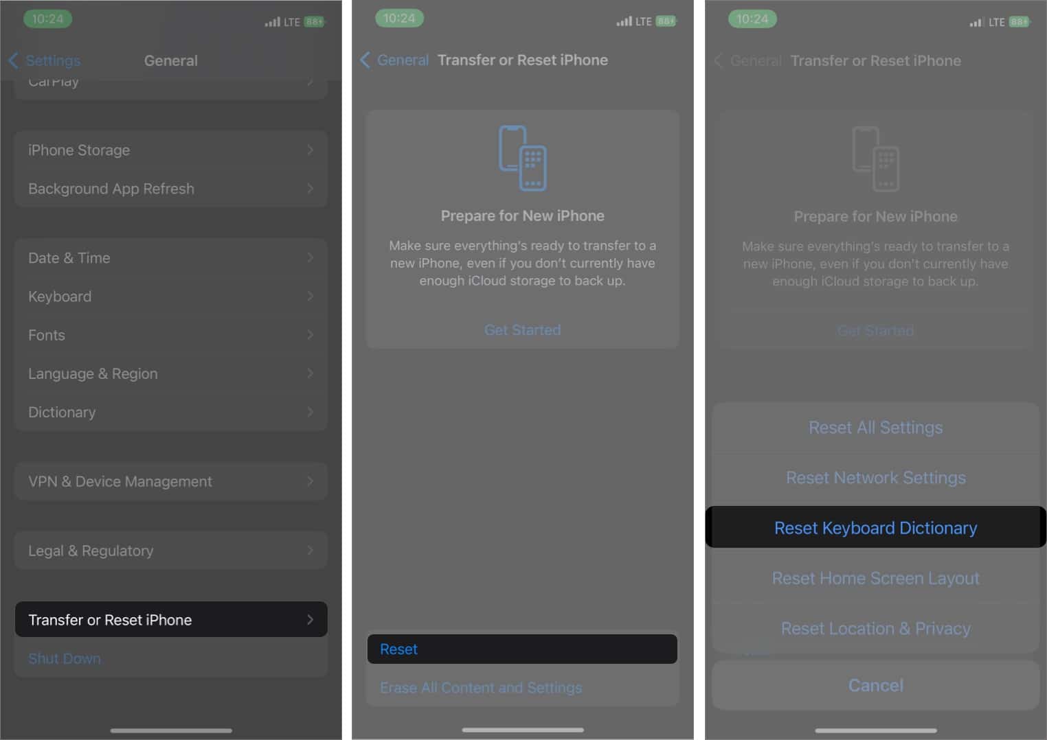 4. Restablecer el diccionario del teclado en iPhone