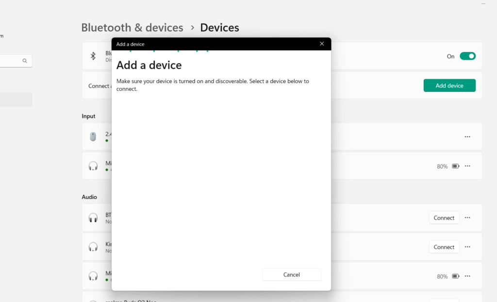 6.En elAgregar un dispositivoCuando se le indique, busque su altavoz Bluetooth y haga clic en él para conectarse a su PC.