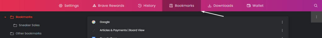 Siga los pasos que se mencionan a continuación paraexporta los datos de tu Brave, como marcadores y contraseñas: