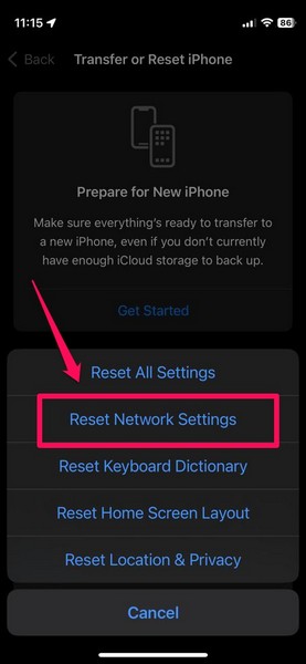 Otra solución efectiva para el problema de que los datos móviles no funcionan en el iPhone es restablecer la configuración de red en su dispositivo. Aunque olvidará todas las preferencias de configuración de red y los cambios que realizó en su iPhone con el tiempo, existe una alta probabilidad de que resuelva el problema que tiene actualmente en su dispositivo.