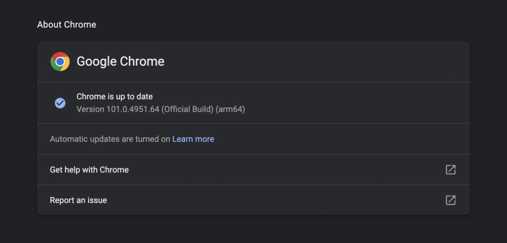Los navegadores web tienden a actualizarse automáticamente, pero siempre es bueno realizar una verificación manual por si acaso. Por ejemplo, puedes forzar la actualización de Chrome abriendo elmenú de cromoy seleccionandoAyuda>Acerca de Google Chrome.