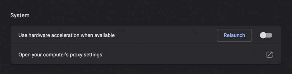 En Chrome, abre elAjustespanel y vaya aAvanzado>Sistema. Luego, apague el interruptor al ladoUtilice aceleración de hardware cuando esté disponible. Puede utilizar el mismo enfoque en otros navegadores basados en Chromium, como Microsoft Edge y Opera.