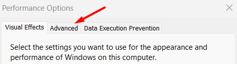 5.En elOpciones de rendimientoventana, proceda a laAvanzadopestaña y elijaCambiar…