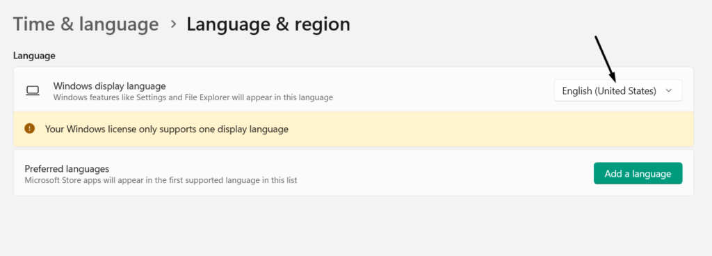 3.Una vez hecho esto, haga clic en el menú desplegable junto aIdioma de visualización de Windowsy elige un diferenteInglésidioma.