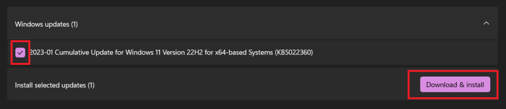 3.Si ve alguna actualización nueva para instalar en la PC, haga clic enDescargar e instalar todopara instalarlos. En caso de que desee instalar una actualización específica, como una actualización de funciones, haga clic enDescargar e instalar.