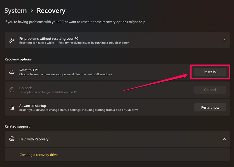 Ahora, una de las mejores formas de resolver el error de función de arranque 0xc0000185 en su PC o computadora portátil con Windows 11 es restablecer el dispositivo y reinstalar Windows 11. Aunque es bastante fácil restablecer una computadora con Windows 11, vale la pena mencionar que perderá los datos y archivos almacenados en su unidad principal. Por lo tanto, antes de continuar y restablecer su PC o computadora portátil, le recomendamos que haga una copia de seguridad de sus archivos y datos en una plataforma de almacenamiento en la nube o en un disco duro externo para recuperarlos después del reinicio.