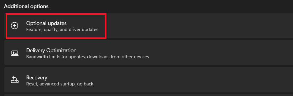 4.Hacer clic enActualizaciones opcionales.