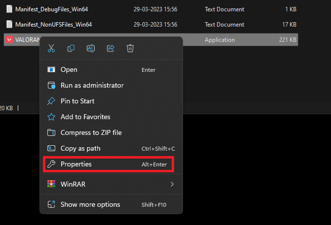 1.En el administrador de archivos, haga clic derecho en el archivo .exe de la aplicación y seleccionePropiedades.