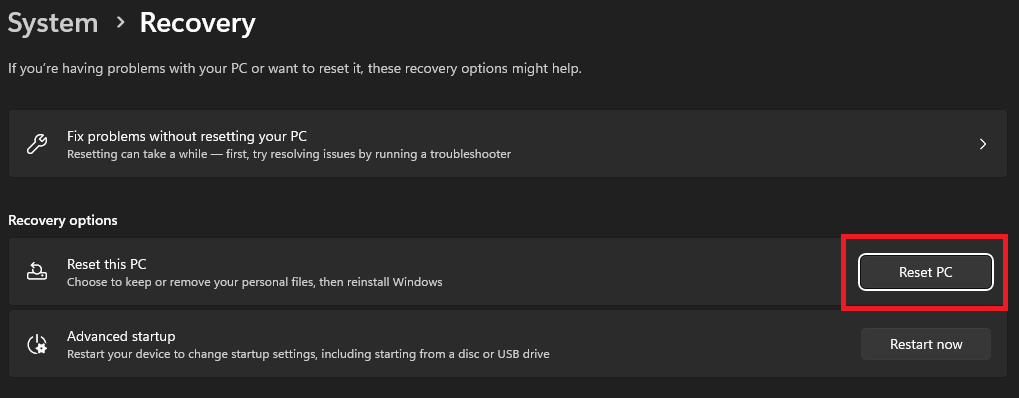 Hacer un reinicio del sistema puede solucionar este problema. Antes de hacer esto, realice una copia de seguridad de archivos, fotografías y otros medios. Para que, si algo sale mal, sus valiosos datos estén seguros, tenga en cuenta que después de la reinstalación, deberá configurar su PC desde cero. Una vez que haya realizado una copia de seguridad de todo, así es como puede reinstalar Windows 11 en su PC.