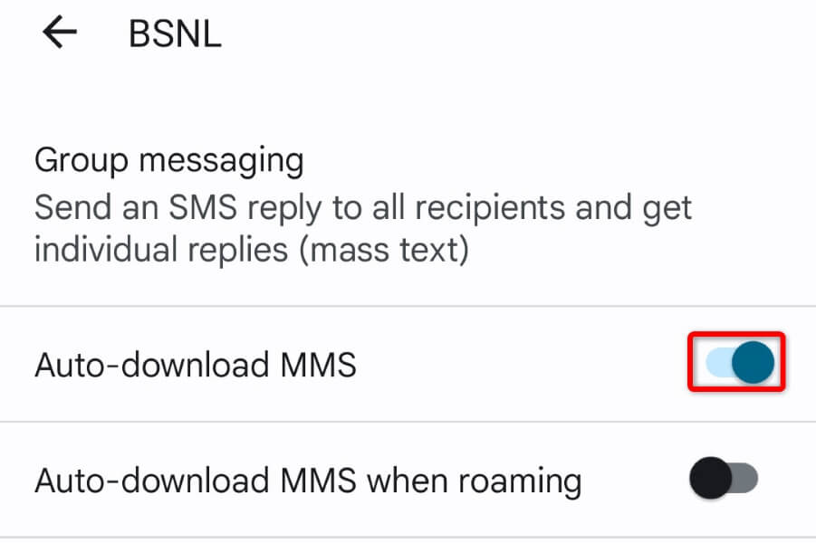 La mayoría de las aplicaciones de Mensajes ofrecen una función de recuperación automática que le permite descargar automáticamente sus mensajes MMS. Vale la pena alternar el estado de esta función para resolver problemas con sus mensajes.