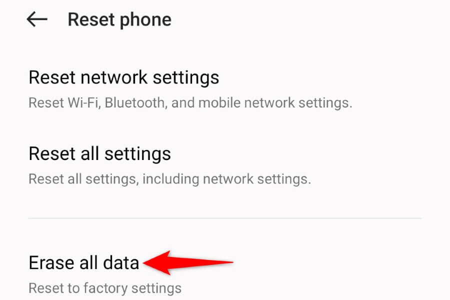 - SeleccionarRestablecer teléfonode las opciones de reinicio disponibles en su pantalla.